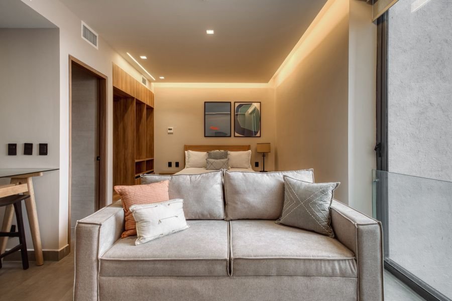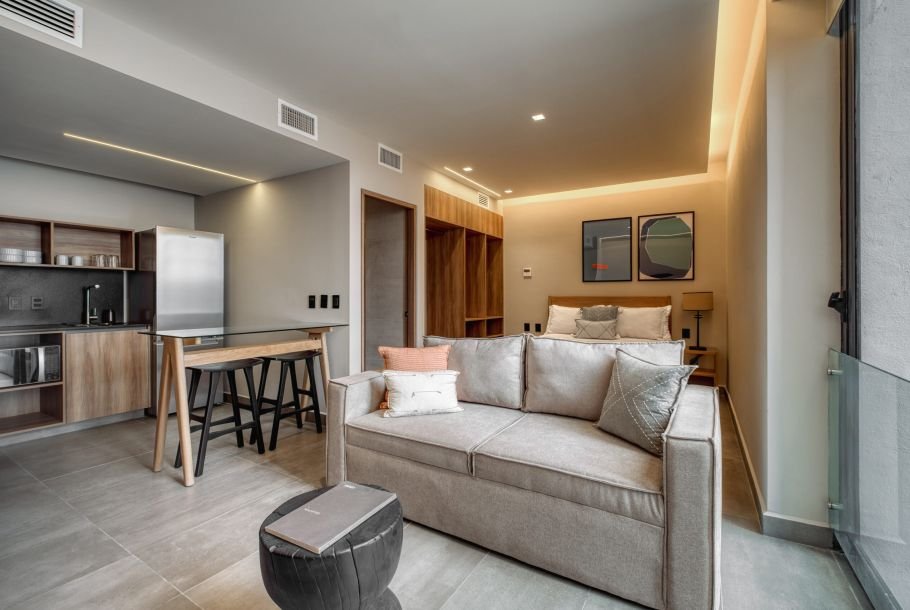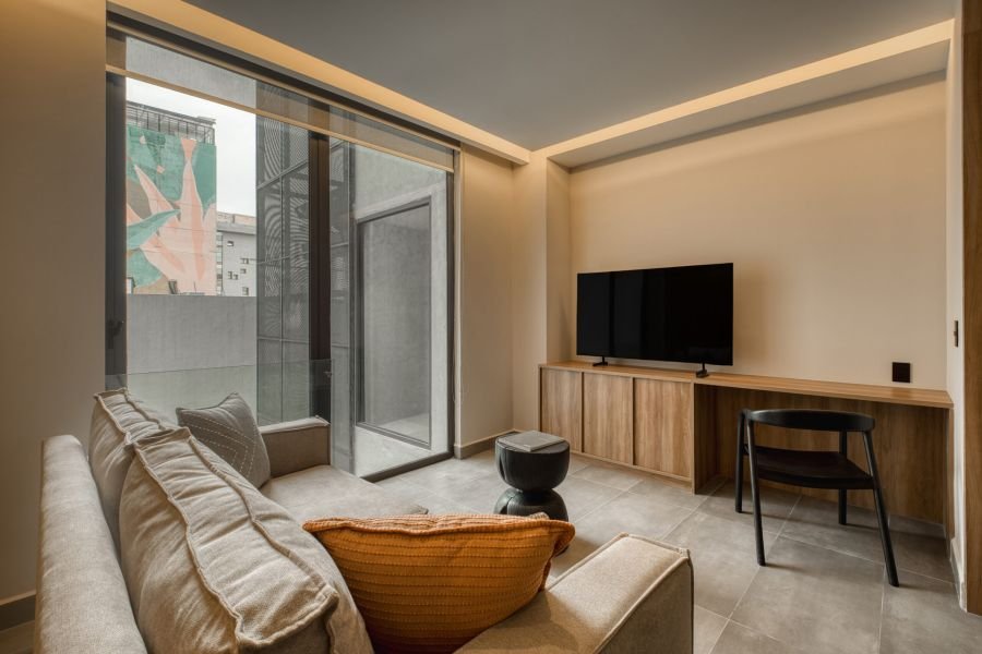 The apartment is part of a building located in Colonia Americana, with a shopping center right below that gives you access to cafés, restaurants, and shops without leaving your doorstep.